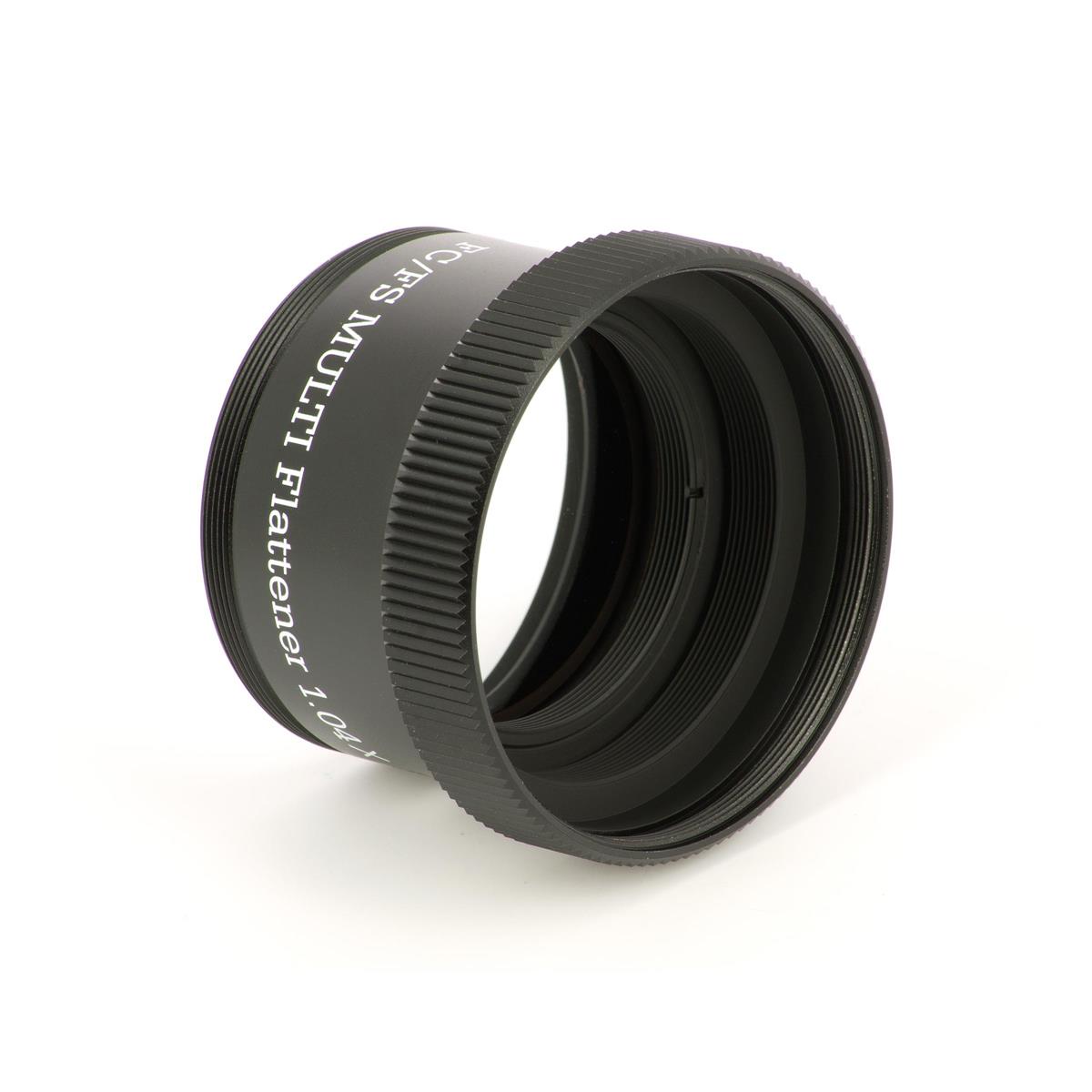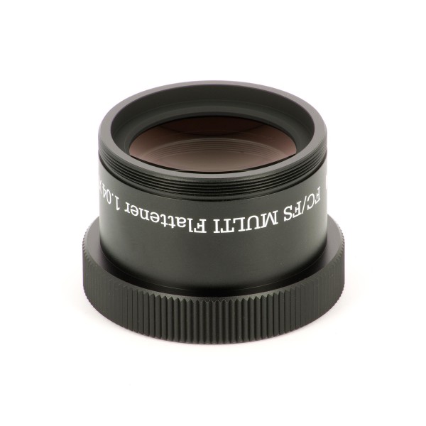 Der Flattener verlängert die Brennweite minimal um den Faktor 1.04x, die Optik besteht aus zwei Linsen, diese sind selbstverständlich multivergütet. Der Bildkreis hat am FS-60CB, FC-76D sowie beim FC-100D 44mm Durchmesser. Bei Verwendung anderer Geräte kann er etwas kleiner sein, jedoch nicht unter 40mm. Er ist nicht für den Sky-90 und FOA-60 geeignet! Es gibt mehrere unterschiedliche CA-Ringe, womit dieser Flattener an rund 20 Teleskopen der FC- , FCT- und FS-Reihe verwendet werden kann.