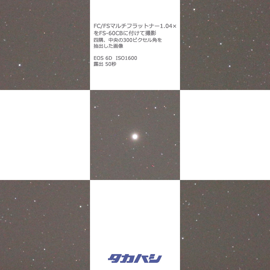Dieser Universal-Flattener ist für einen Großteil der zweilinsigen Fluorit Optiken von Takahashi geeignet. Dank unterschiedlicher Kamera-Adapter (CA-Ringe, siehe oben) wird bei jedem Teleskop die bestmögliche Korrektur erreicht. Er ersetzt den FS-60 Flattener (TKA20582) sowie den FC-76D Flattener (TKA18582), im Vergleich zu diesen Vorgängern ist der Bildkreis etwas größer, die Korrektur am Rand ist ebenfalls besser, weshalb diese kleinen Optiken nun auch für Vollformat gut einsetzbar sind. Aber nicht nur am Gesichtsfeldrand werden Fortschritte erzielt, die Korrektur insgesamt ist besser, auch Sterne in der Bildmitte werden schärfer abgebildet.