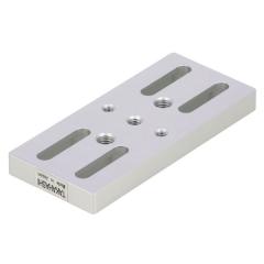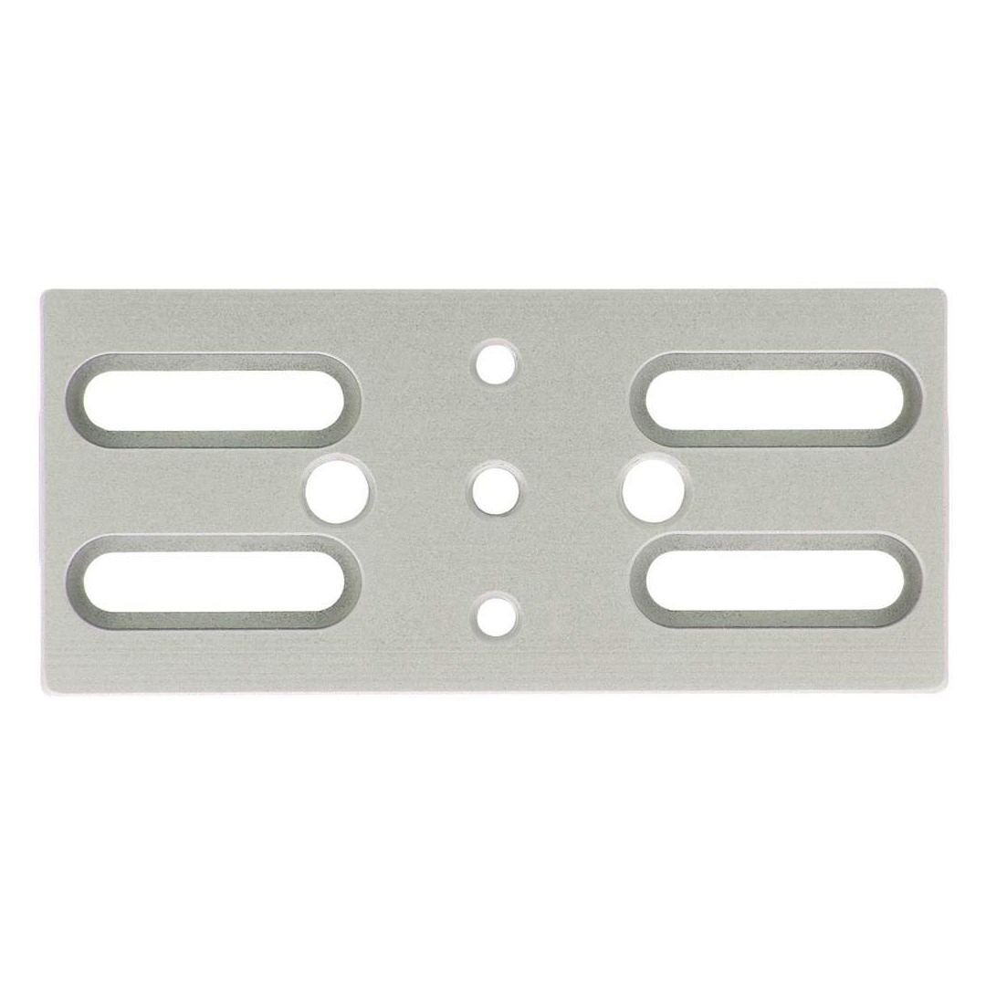 Weiters sind ein zentrales 1/4 Zoll Gewinde, sowie quer 2x M5 vorhanden, Länge der Platte 100mm, Dicke 10mm.