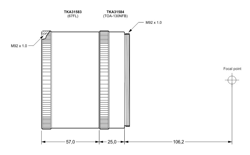 TOA-130F, TOA-130NFB, TOA-150, TOA-150B mit 67-Flattener (Anschluss auch ohne Flattener möglich)