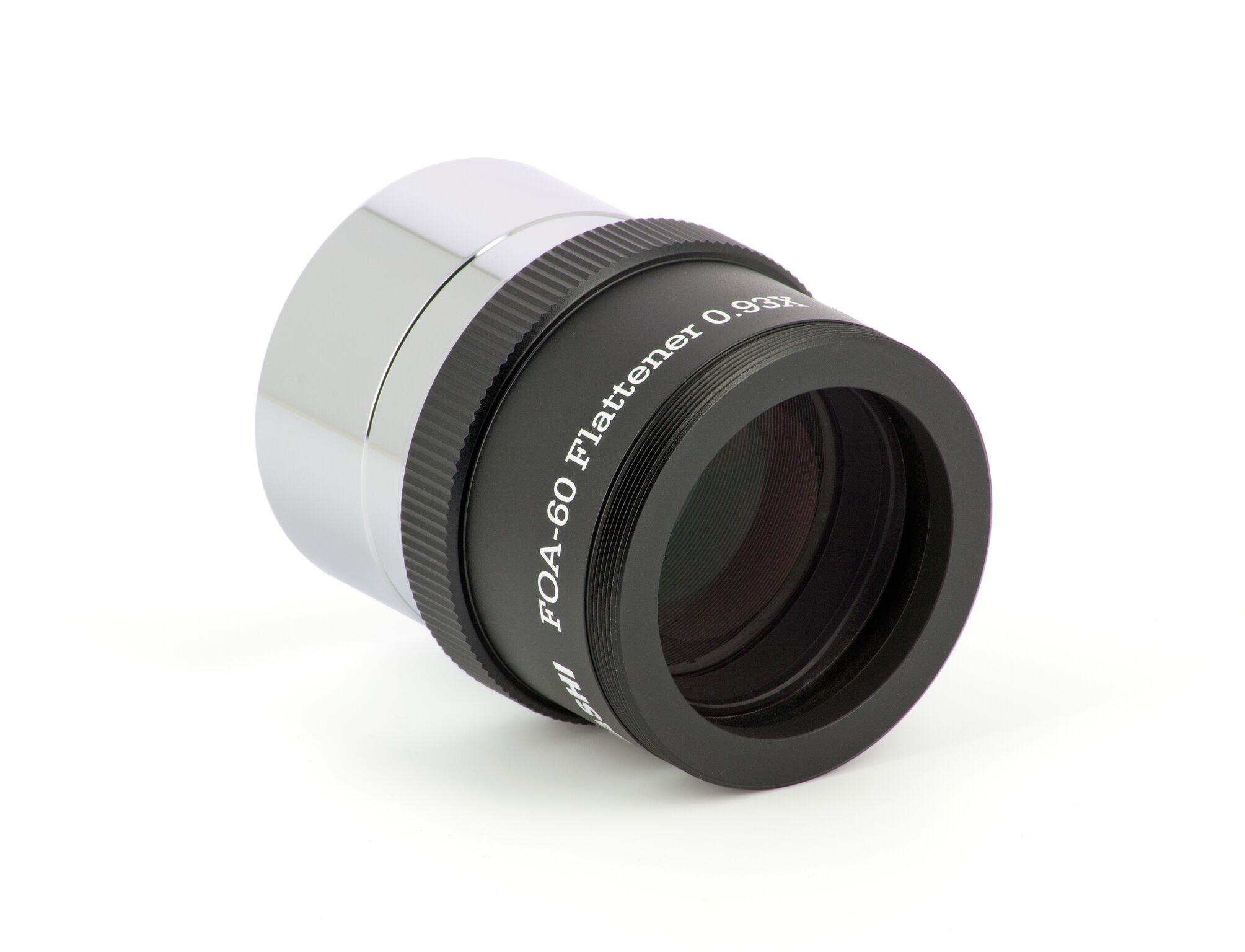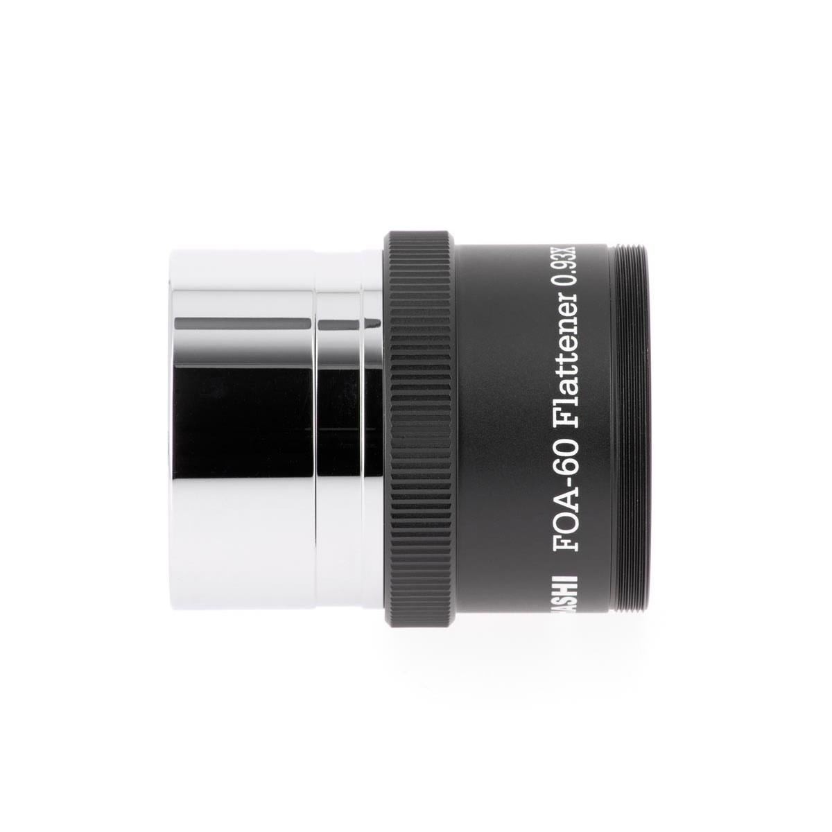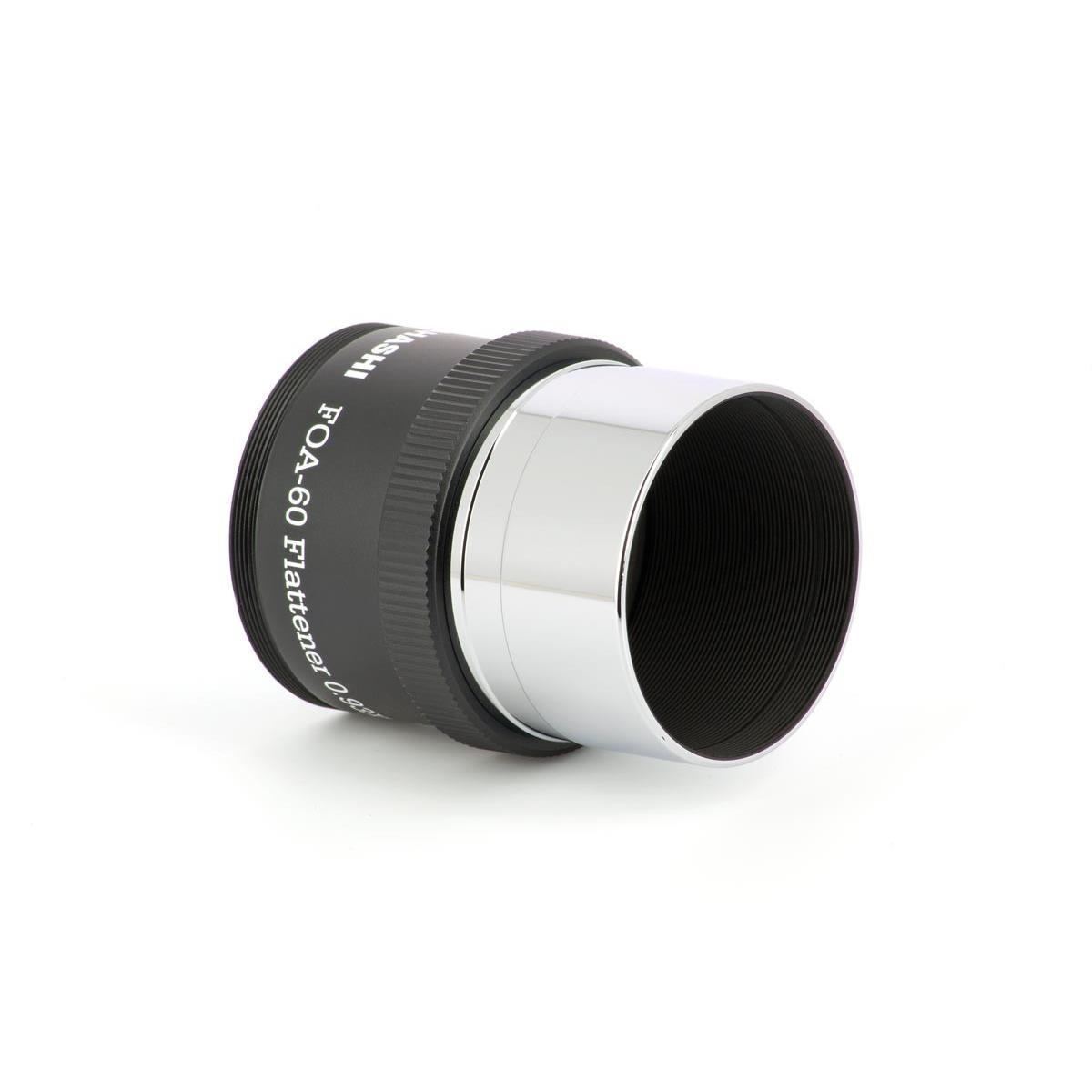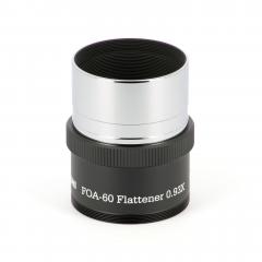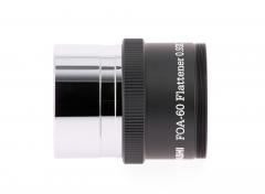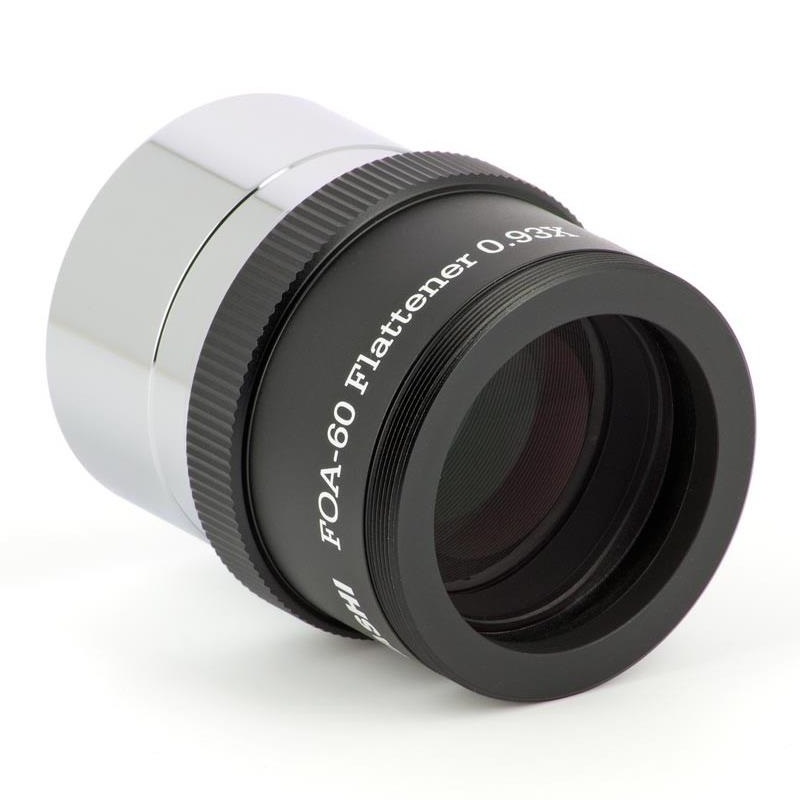 Für den FOA-60 gibt es diesen passenden Flattener (2 Linsen in 2 Gruppen), er reduziert die Brennweite minimal um den Faktor 0,93x auf 495mm (f/8,2). Er ist für Vollformat ausgelegt bei Spot-Größen von unter 10 Mikrometer über das ganze Feld. Eine ideale Kombination für Sonnenfinsternisse um die Korona abzubilden oder natürlich für die Fotografie großflächiger DeepSky-Objekte, jedoch auch als Hochleistungs-Tele für die Naturfotografie. Bei Verwendung des Q-Modules, ist der Flattener nicht zu verwenden, das Q-Modul ebnet das Bildfeld selbst!