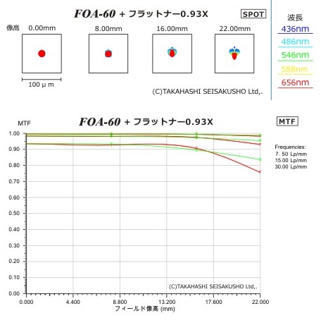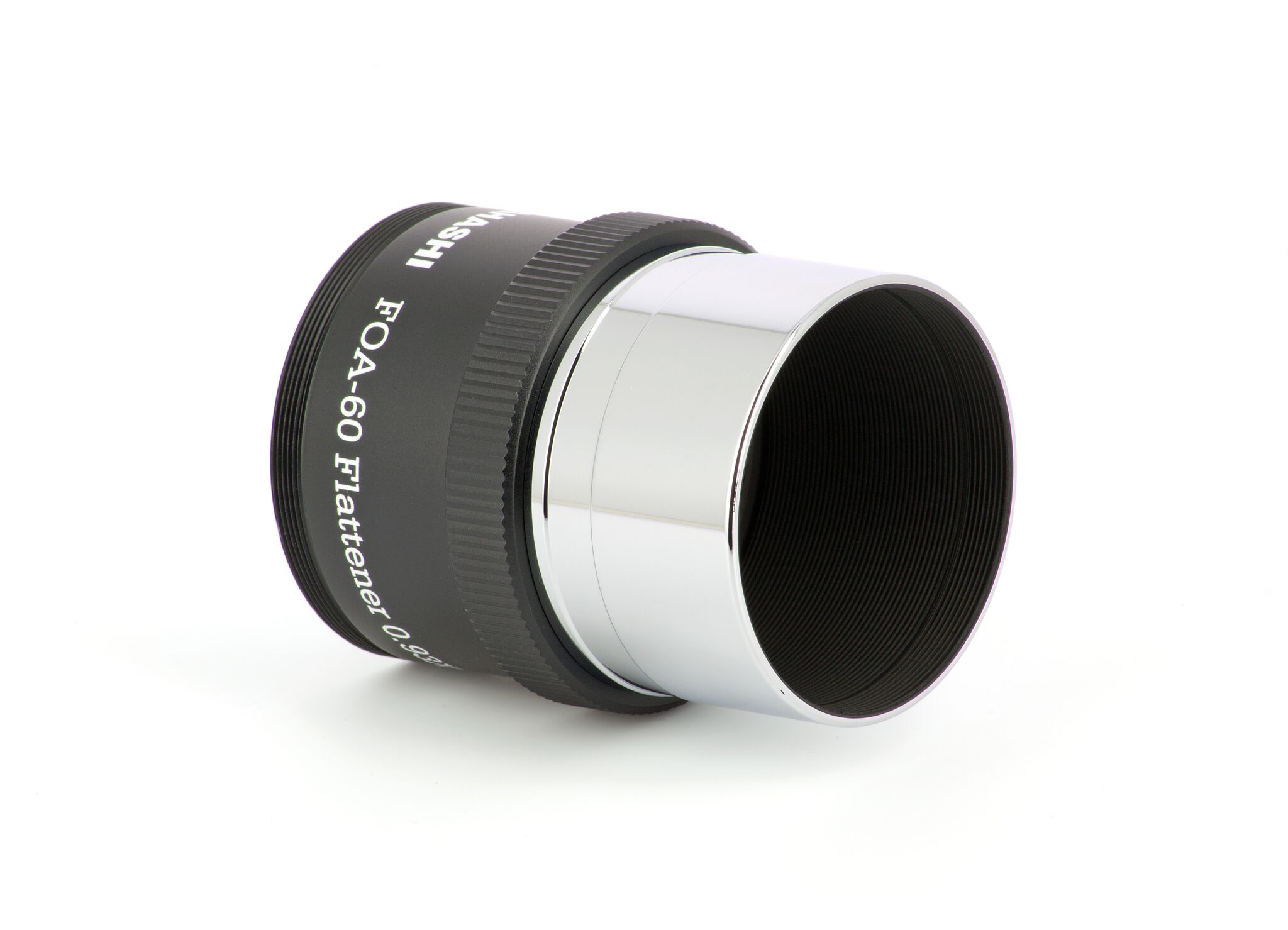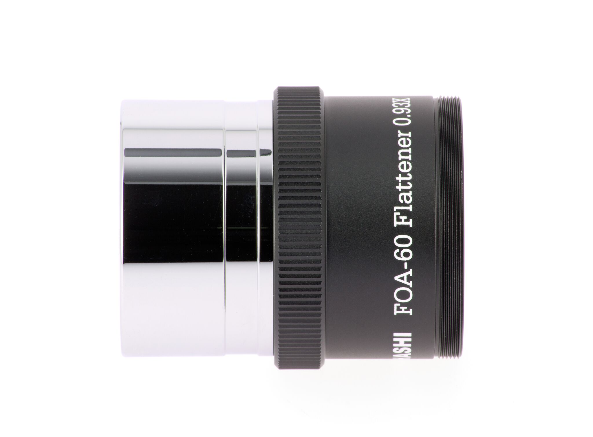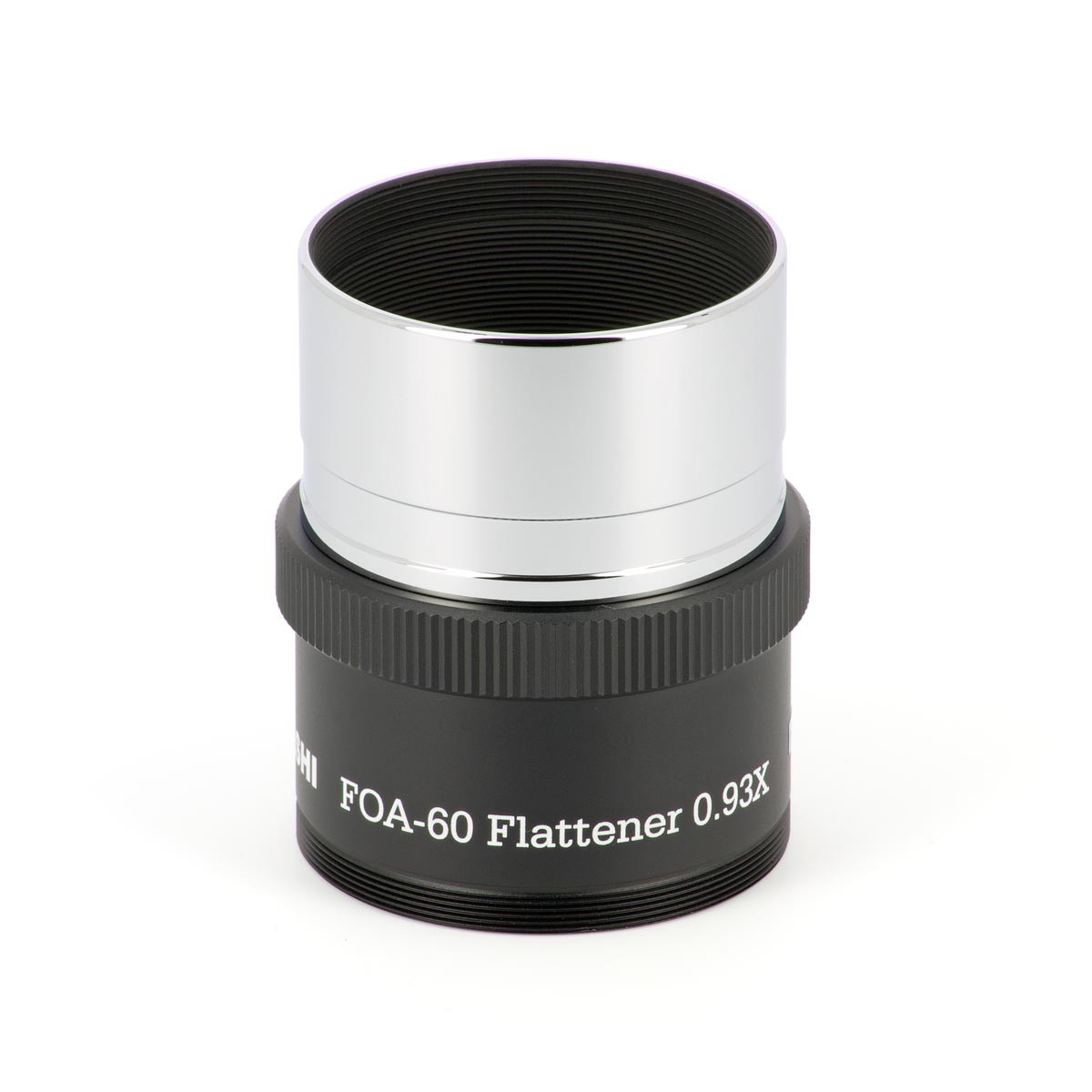 Für den FOA-60 gibt es diesen passenden Flattener (2 Linsen in 2 Gruppen), er reduziert die Brennweite minimal um den Faktor 0,93x auf 495mm (f/8,2). Er ist für Vollformat ausgelegt bei Spot-Größen von unter 10 Mikrometer über das ganze Feld. Eine ideale Kombination für Sonnenfinsternisse um die Korona abzubilden oder natürlich für die Fotografie großflächiger DeepSky-Objekte, jedoch auch als Hochleistungs-Tele für die Naturfotografie. Bei Verwendung des Q-Modules, ist der Flattener nicht zu verwenden, das Q-Modul ebnet das Bildfeld selbst!