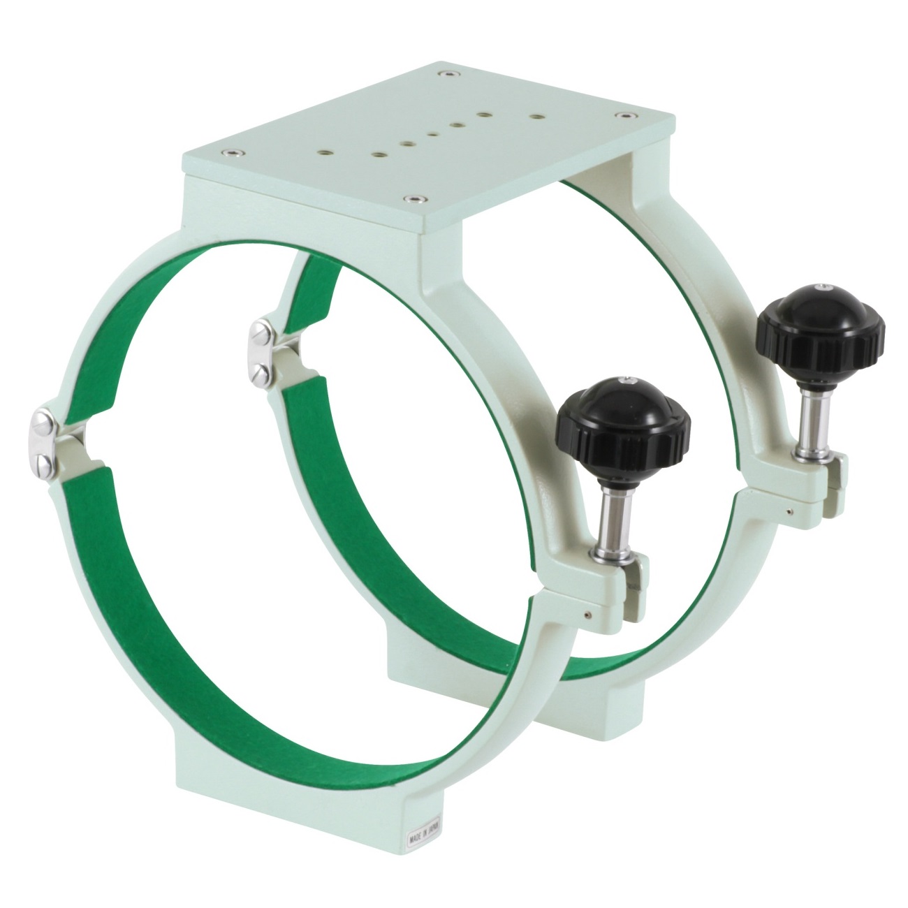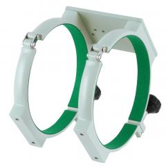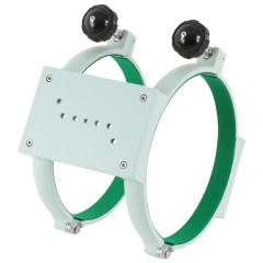 Rohrschellenpaar für den Epsilon-180ED, Durchmesser 232mm, inklusive langer Top Plate zur Montage von Leitrohren oder anderem Zubehör. Die hochwertigen Rohrschellen sind sehr massiv, der Tubus wird mit großen, auch mit Handschuhen gut greifbaren Klemmschrauben geklemmt.