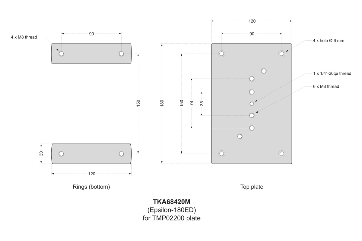 TMP02400 | Montageplatte für Rohrschellen mit 130mm oder 180mm Brücke (z.B. für Epsilon) | 117.00 EUR | |