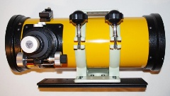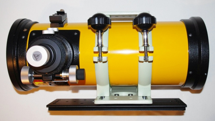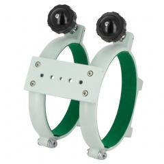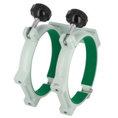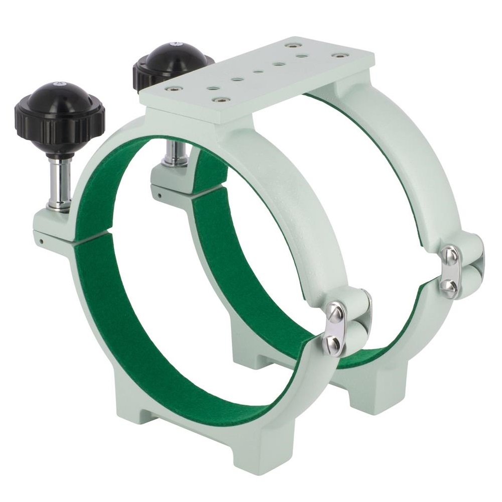 Rohrschellenpaar für denTakahashi Epsilon-130D, Durchmesser 166mm, inklusive Top Plate zur Montage von Leitrohren oder anderem Zubehör. Die hochwertigen Rohrschellen sind sehr massiv, der Tubus wird mit großen, auch mit Handschuhen gut greifbaren Klemmschrauben geklemmt. Auch für den alten Epsilon-130 und den MT-130 Newton geeignet.