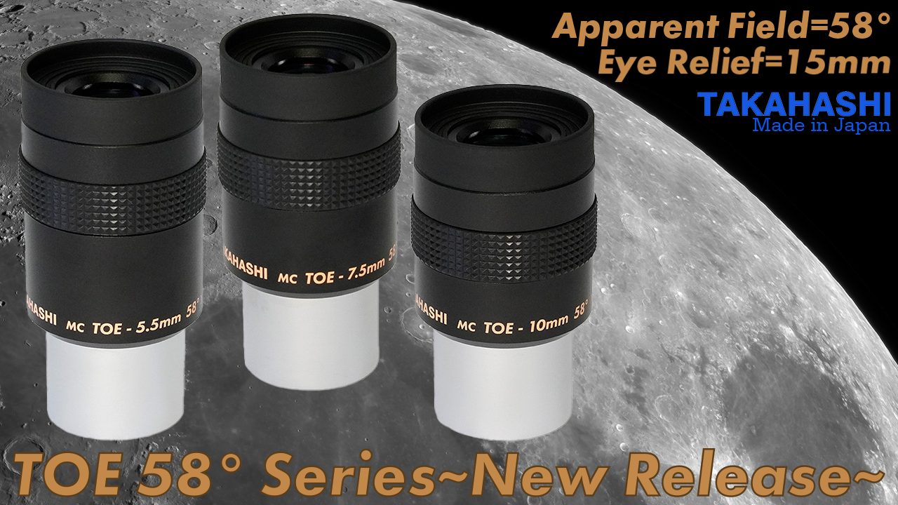 Mit diesen Okularen erweitert Takahashi seine Okular-Palette, und das ist unserer Meinung nach besonders wichtig. Die TPL-Okulare bieten zwar ein Höchstmaß an Abbildungsqualität auf der Achse, doch haben sie den Nachteil des knappen Augenabstandes von rund zwei Drittel der Brennweite. Genau in diesem Bereich und als Ergänzung zu den bestehenden TOE-Okularen mit 52°, hat Takahashi drei neue Brennweiten angekündigt, brillenträgertauglich mit angenehmen Augenabstand von 15mm und größerem Sehfeld von 58°!