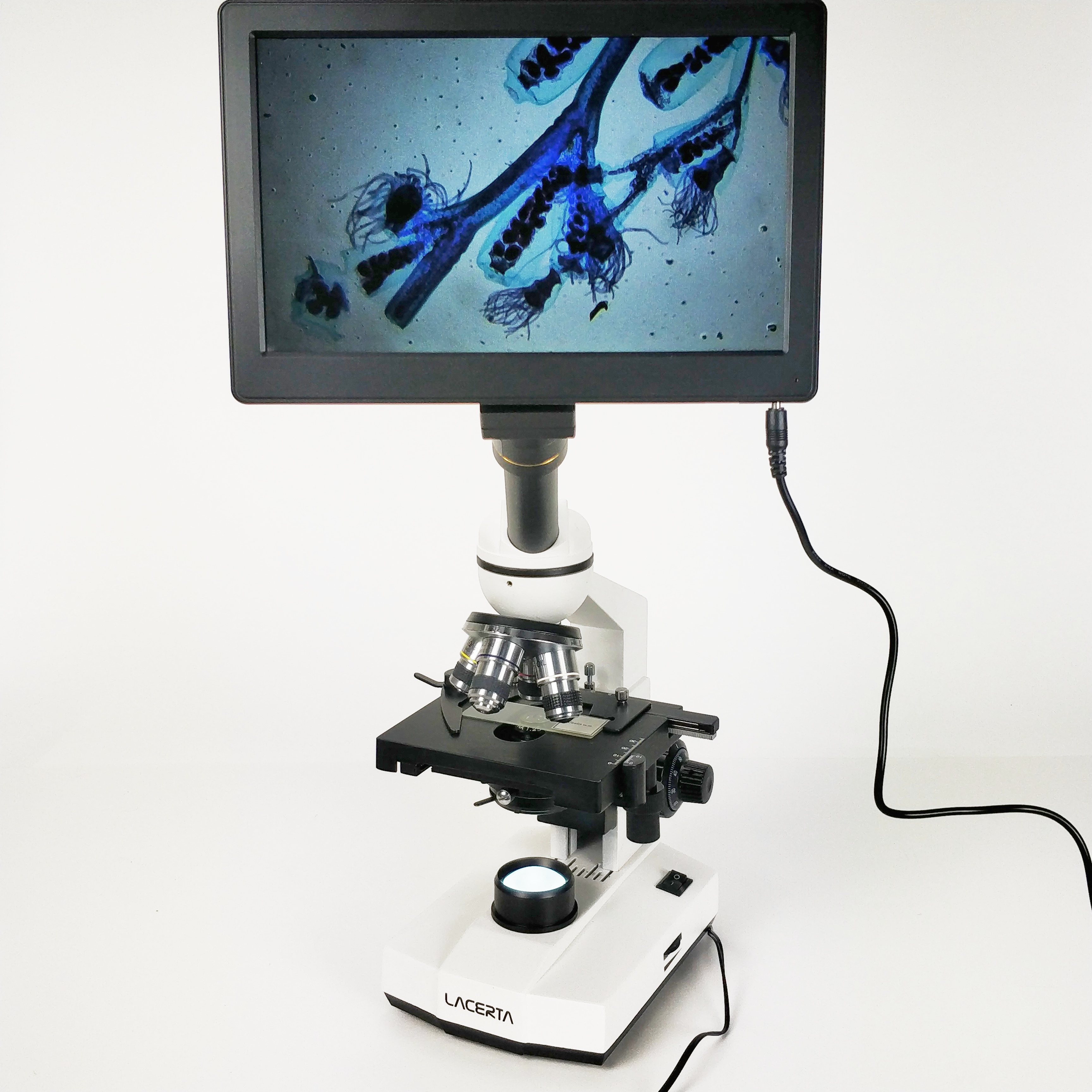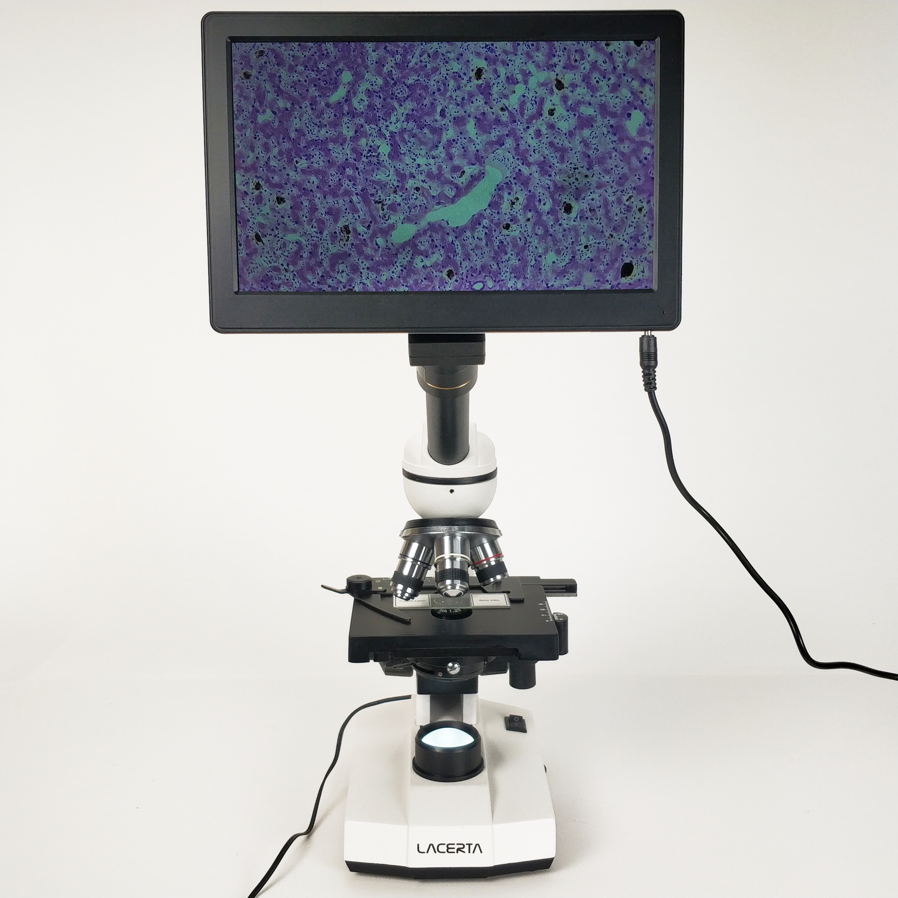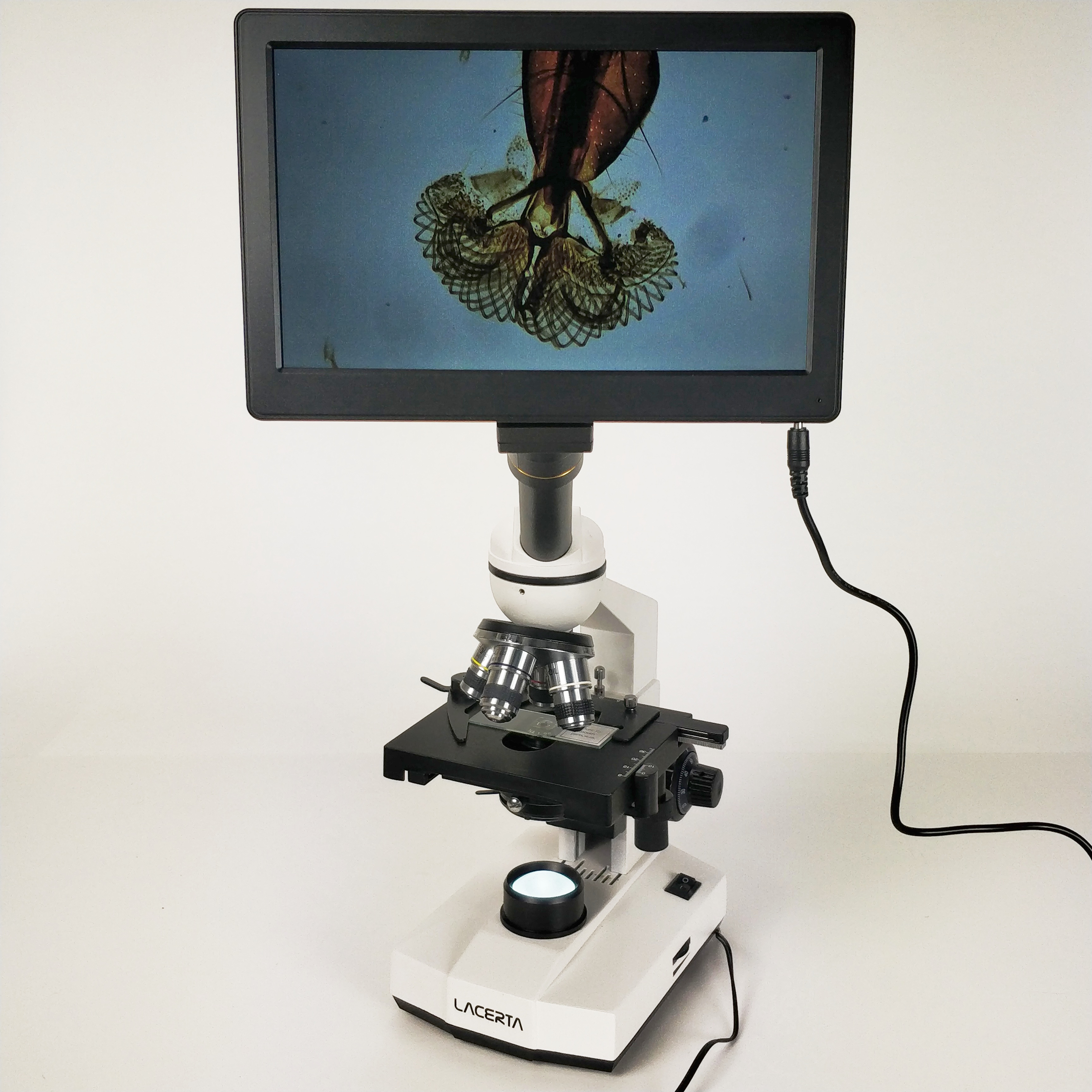 LACERTA stand alone HDMI Mikroskop mit 22,5cm LCD Bildschirm, 4 JIS Objektive, Vollmetall Gehäuse