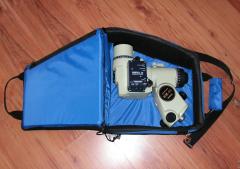 Sie besitzt innenseitig ein gut gepolstertes, zusätzliches Fach für Kleinteile wie Okularablageplatte (siehe Bild links), Kabel oder Handbox.