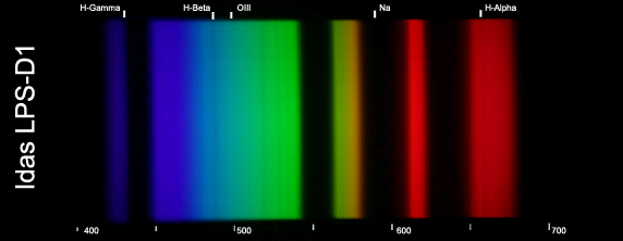 Der IDAS LPS-D1 Filter ist der Nachfolger des P2, und hat eine sehr ähnliche Transmissionskurve. Er zeichnet sich durch mehrfache Durchlassfenster im ansonsten bei Lichtverschmutzungsfiltern geblockten gelb-roten Bereich, und liefert daher die farbneutralsten Rohbilder die möglich sind. Der fotografische Nutzen ist sehr deutlich, die Belichtungszeit kann sehr viel länger ausfallen je nach Verschmutzungsgrad, und die Nebellinien werden nicht abgeschwächst. Der visuelle Nutzen ist weniger ausgeprägt, da empfehlen wir lieber UHC oder OIII Filter.