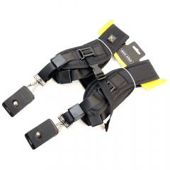 Ähnlich wie beim Rucksack wird das Gewicht auf die Schultern verteilt, und die Kamera (oder das Objektiv mit Schelle) hängt angenehm vor der Brust.
