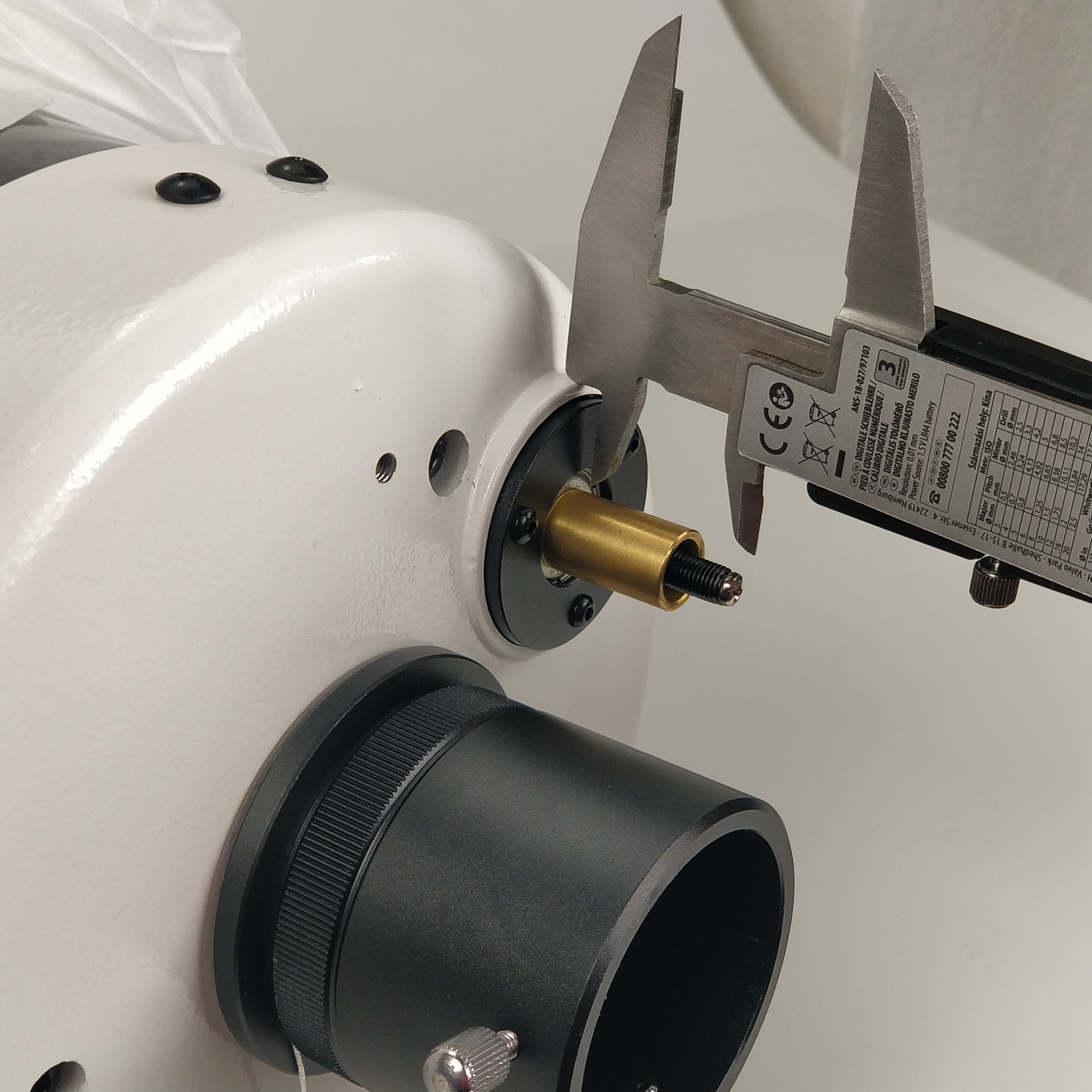 Für Schmidt-Cassegrain Teleskope und Skywatcher Maksutovs (jeweils ab 150mm Objektivdurchmesser) gibt es ebenfalls passende Mikrofokus-Einheiten. Der Aufbau ist durch die andere Bauformen jedoch anders - sogar Herstellungsjahr-Unterschiede sind vorhanden, nachdem die Fokussiereinheit bei katadioptrischen Teleskopen unglücklicherweise nicht genormt sind. Wir empfehehlen deshalb die Fokustrieb Ihres Teleskops messen: Durchmesser und maximale Höhe zumindest, evtl auch die Positionen der 3 Befestigungsschrauben zum Tubus.