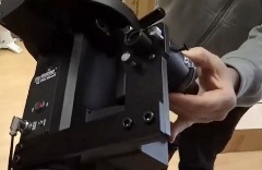 Der Polsucher für die EQ8 wird Off-Axis montiert, die nötigen Schrauben sind dabei. Er besitzt die Standard Strichplatte