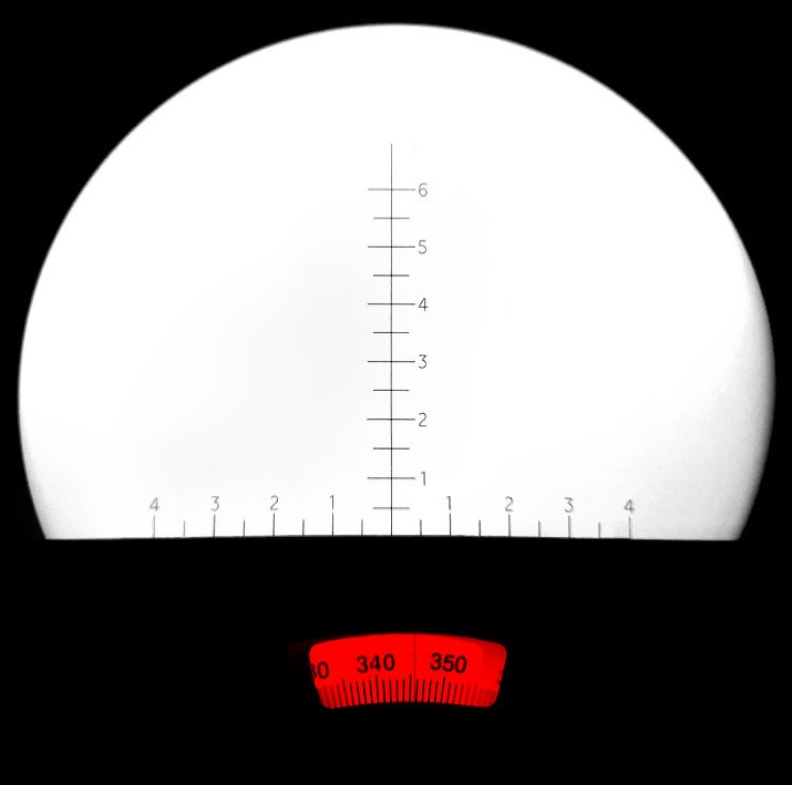 Kalibrierungs-Skala an der Objektivfassung um die abgelesenen Daten schnell berechnen zu können.