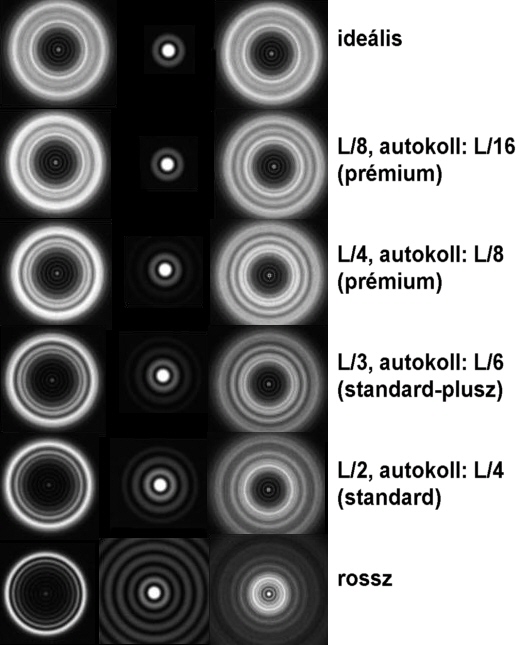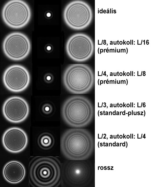 -lambda/4 (standard, vagy standard-plusz), autokollimációban lambda/8 (prémium)