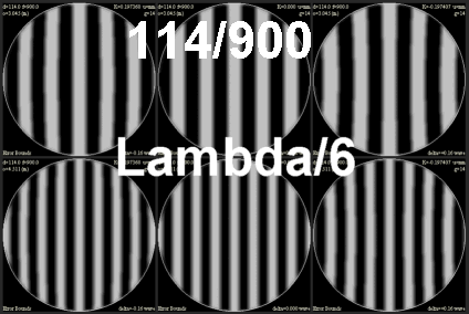 F/8 fényerejű, azaz 114/900-es vagy 150/1200-es parabolizált Newton távcső, illetve 120/1000-es vagy 150/1200-as refraktor szigorúan értelmezett rácstesztje. Végtelen távoli (mü)csillag, 14 vonal/mm sürüségü rács, két különböző távolságban felvett extrafokális Ronchigram. Amennyiben az összes gyakoribb hiba (szférikus aberráció, szektor és zónahiba, peremkopás) azonos súllyal fordul elő, az eredő hibák rendre: