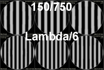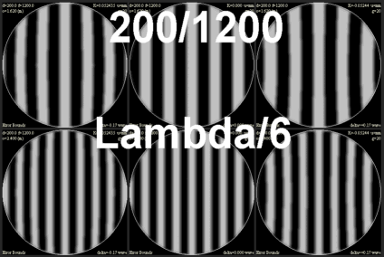 Az alábbi fotó pedig azt mutatja, hogy egy lojálisan értelmezett rácstesztnél, azaz ha csak a szférikus aberrációból adódó hibát tekintjük, mekkora lehet a Ronchigram vonalainak legnagyobb görbülése diffrakcióhatároltság esetén. Amint a vonalakon más rendelenességet (peremkopás, zónahiba) is észlelünk, az "Allow Best Fit Refocusing", azaz a legjobb görbültségi közelítés érvényét veszti!