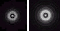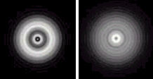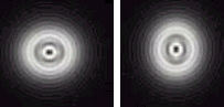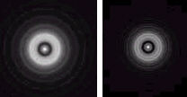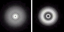 Gyűrű alakú zónahiba, azaz süllyedés (fent) vagy emelkedés (lent). Az ilyen hibájú tükrök a megmunkálás során lehet, hogy még jók voltak, vagy nagyobb sorozatban, egyenkénti ellenőrzés nélkül készültek, vagy a parabolizálás során nem lettek megfelelően megmunkálva. Az üveg anyagában levő feszültségek, vagy a helytelen foglalás is létrehozhat egy olyan gyűrű alakú területet, mely lesüllyedt, vagy felemelkedett. Amennyiben a deformáció mértéke, vagy mérete nem nagy, a tükör használható. Ha a tükör anyaga “nem pihente ki magát”, akkor ez a hiba csak egy idő múltán jelentkezik. Ha pedig a befogatás helytelen, akkor a javítás módja se egy tükörcsiszolómesternél keresendő. A standard tükröknél általánosan előfordul kisebb-nagyobb mértékben, anomáliáktól mentes vonalak csak a legritkább esetben (s gyakran csak a drágább távcsövek tesztelésekor) láthatók, de amatőr észlelésekhez, bemutatásokhoz az ilyen “hibájú” műszer még jól használható. A műcsillag extra és intrafokális képén a gyűrűk intenzitásaránya különbözik. A fotón levő hiba mértéke még tolerálható, nálunk azonban Önt már reklamációra jogosítja fel!