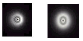 Egyéb hiba. Ezek a hibák beállítási, vagy a helytelen használat okozta hibák. A baloldali kép kómahibát jelez, ami vagy a távcső rossz jusztírozására, vagy pedig az optikai tengelytől távolabbi vizsgálatra utal. A jobboldali képet a turbolencia okozza, azaz a távcső még nem hűlt ki, vagy előtte felszálló légáramlatot hoztunk létre (pl. a tubusnyílás közelében "felejtett" kezünkkel). Ha ideális körülmények közt is maszatos az extra/intrafokális kép, akkor a tükör nincs kellően felpolírozva. (Gyári tükröknél szinte soha nem fordul elő)