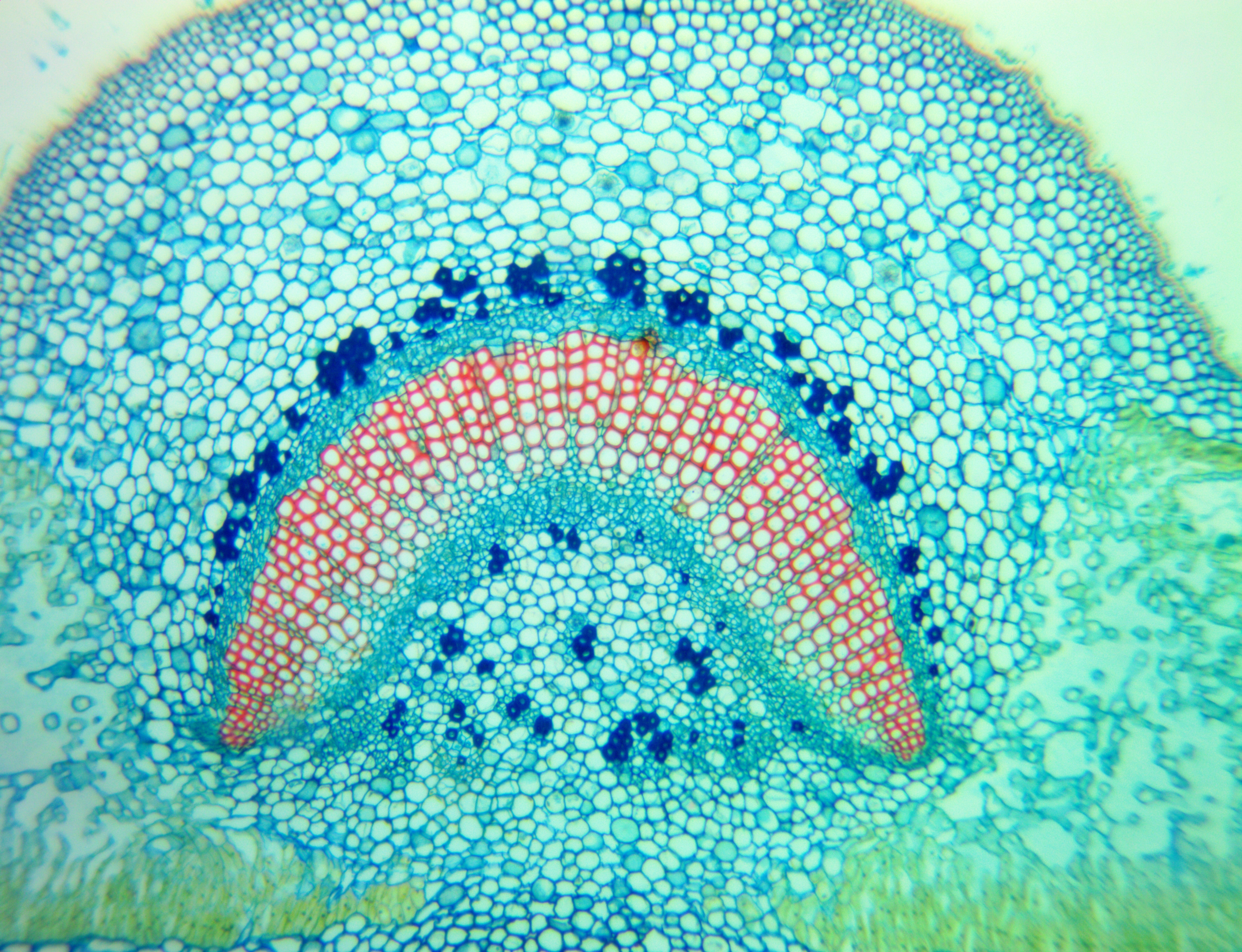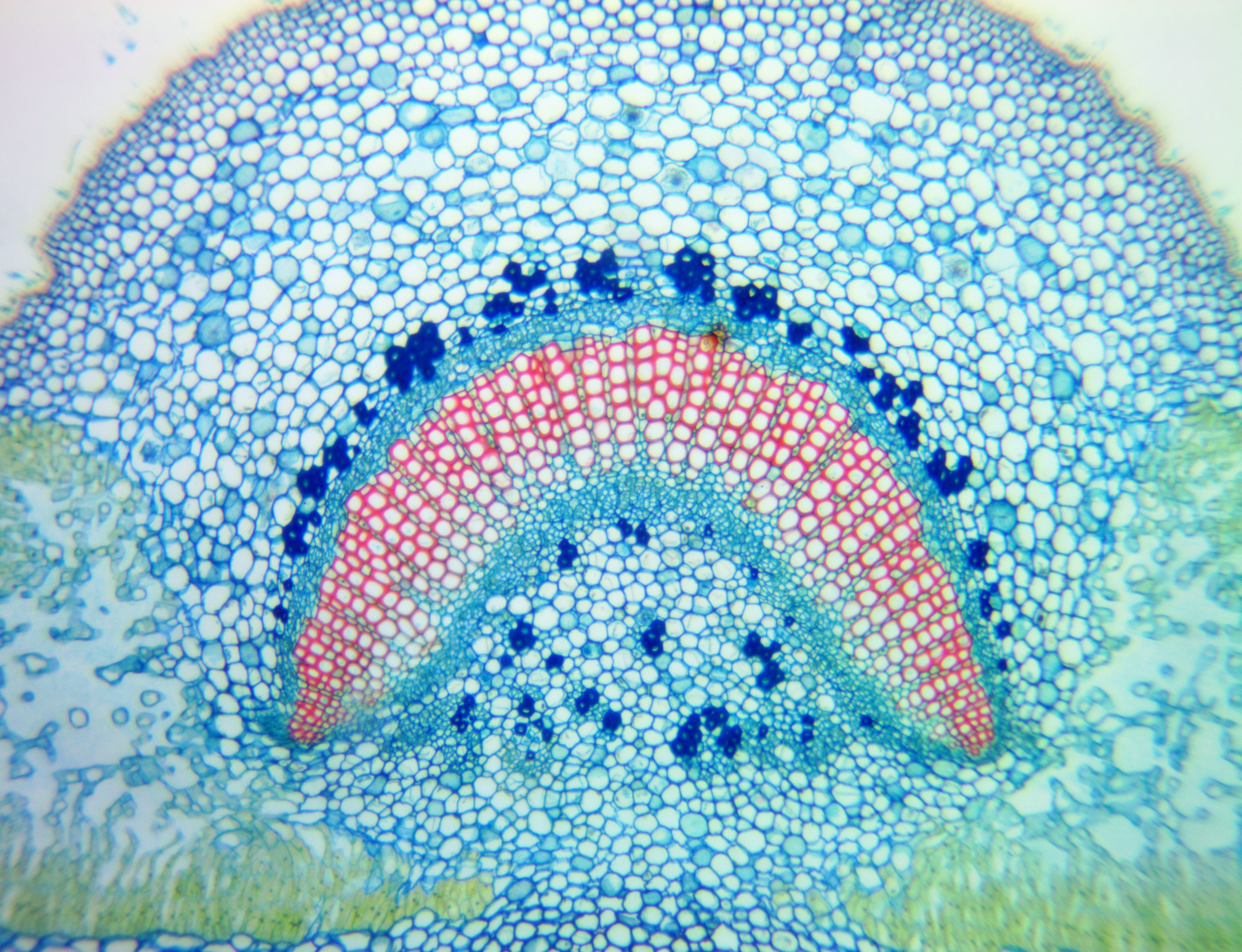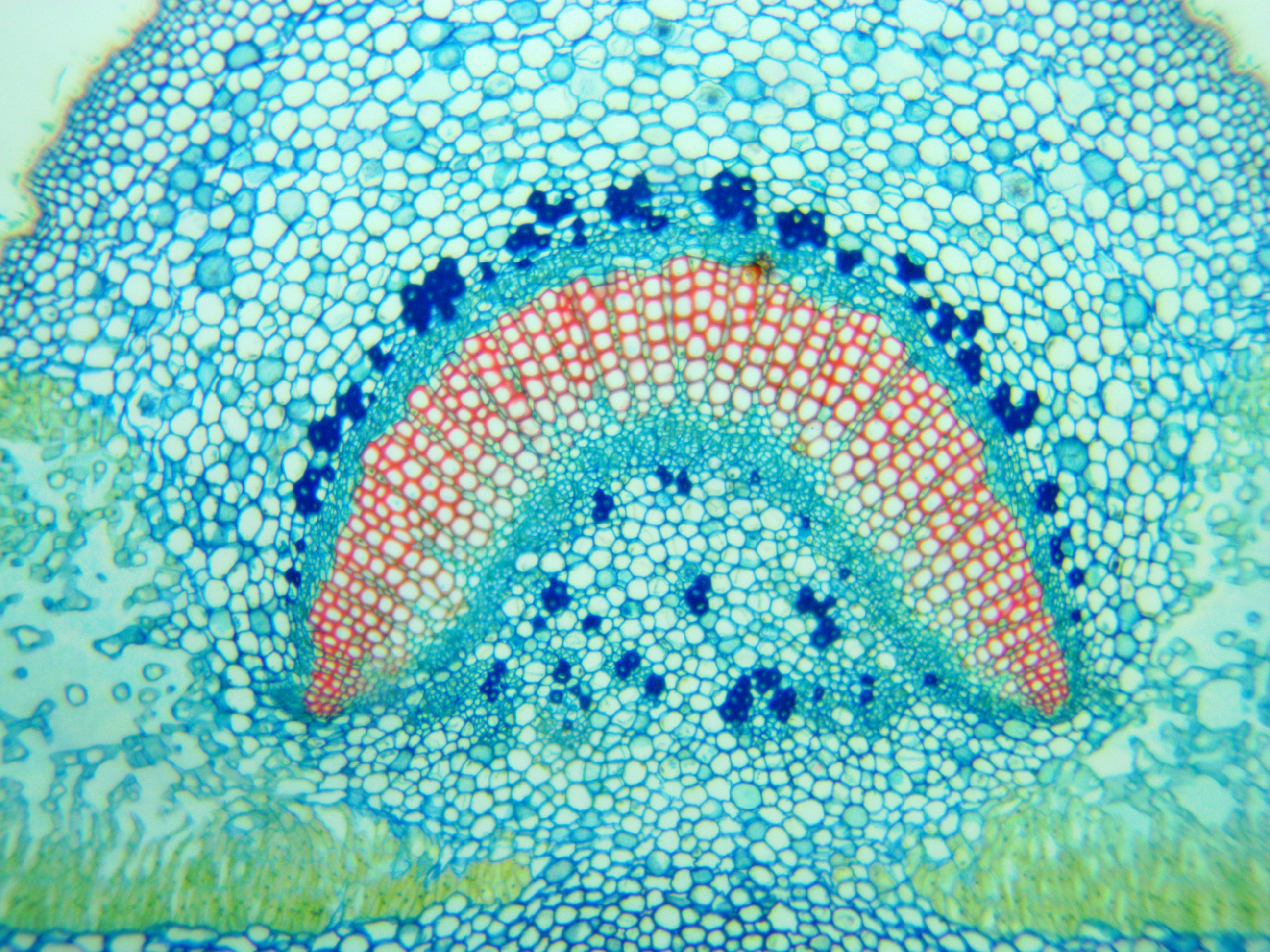 Alle Testfotos wurden durch einen preiswerten Mikroskop (Fremdfabrikat, 500 EUR Preisklasse) mit achromatischen Objektiven 10x (Botanik) und 40x (Hystologie) aufgenommen. Es ging ja darum, die Kamera, und nicht das Mikroskop zu testen...