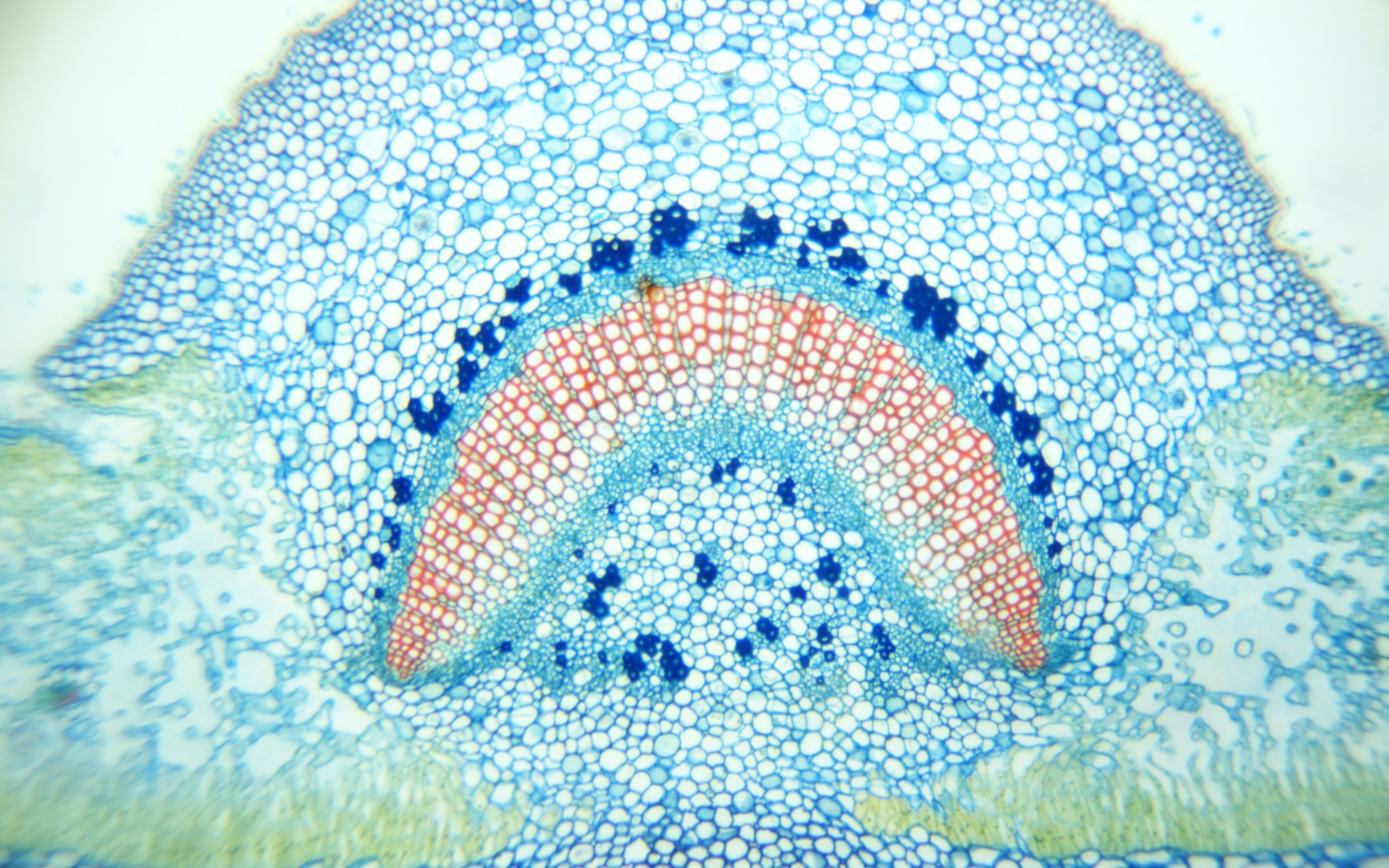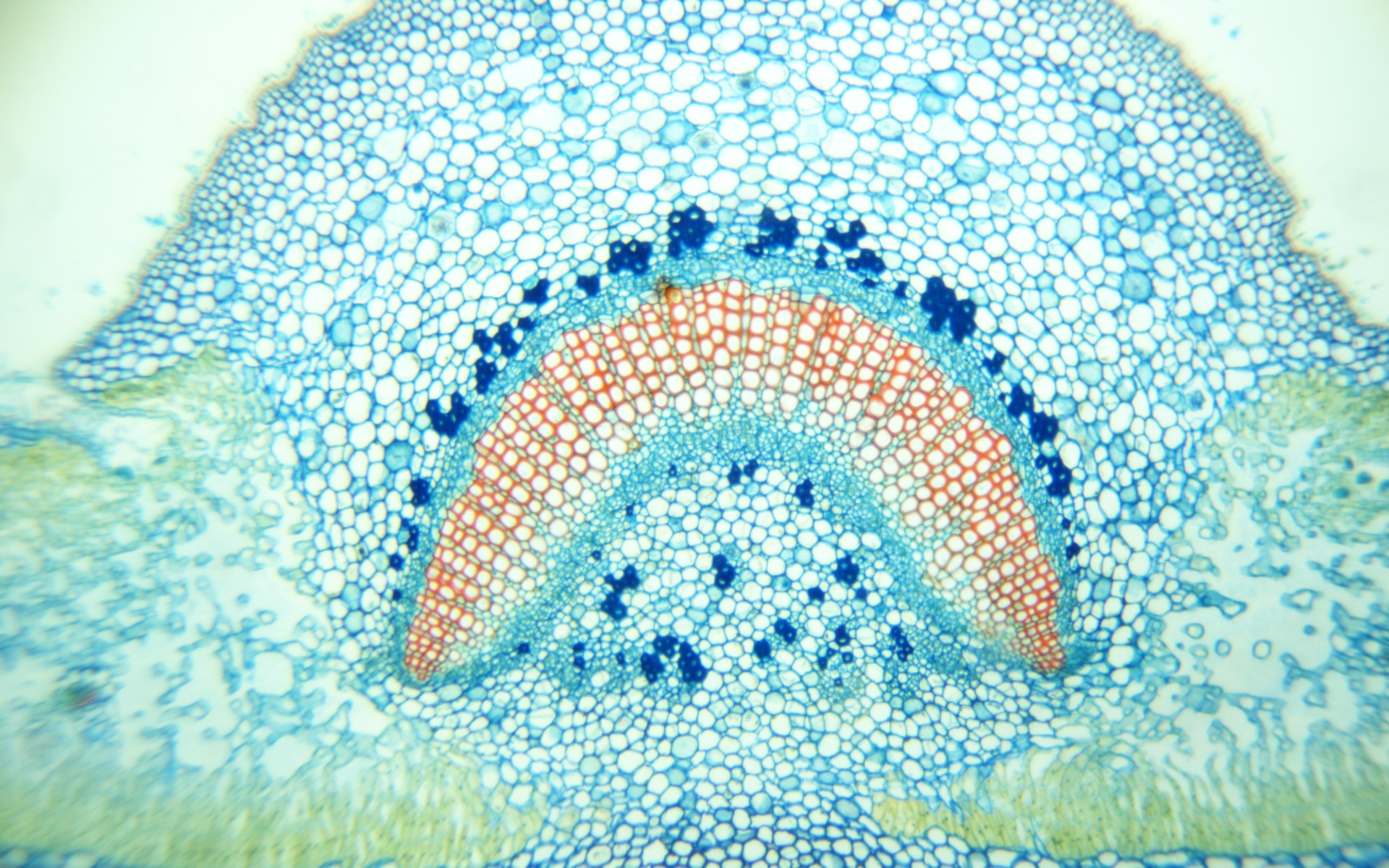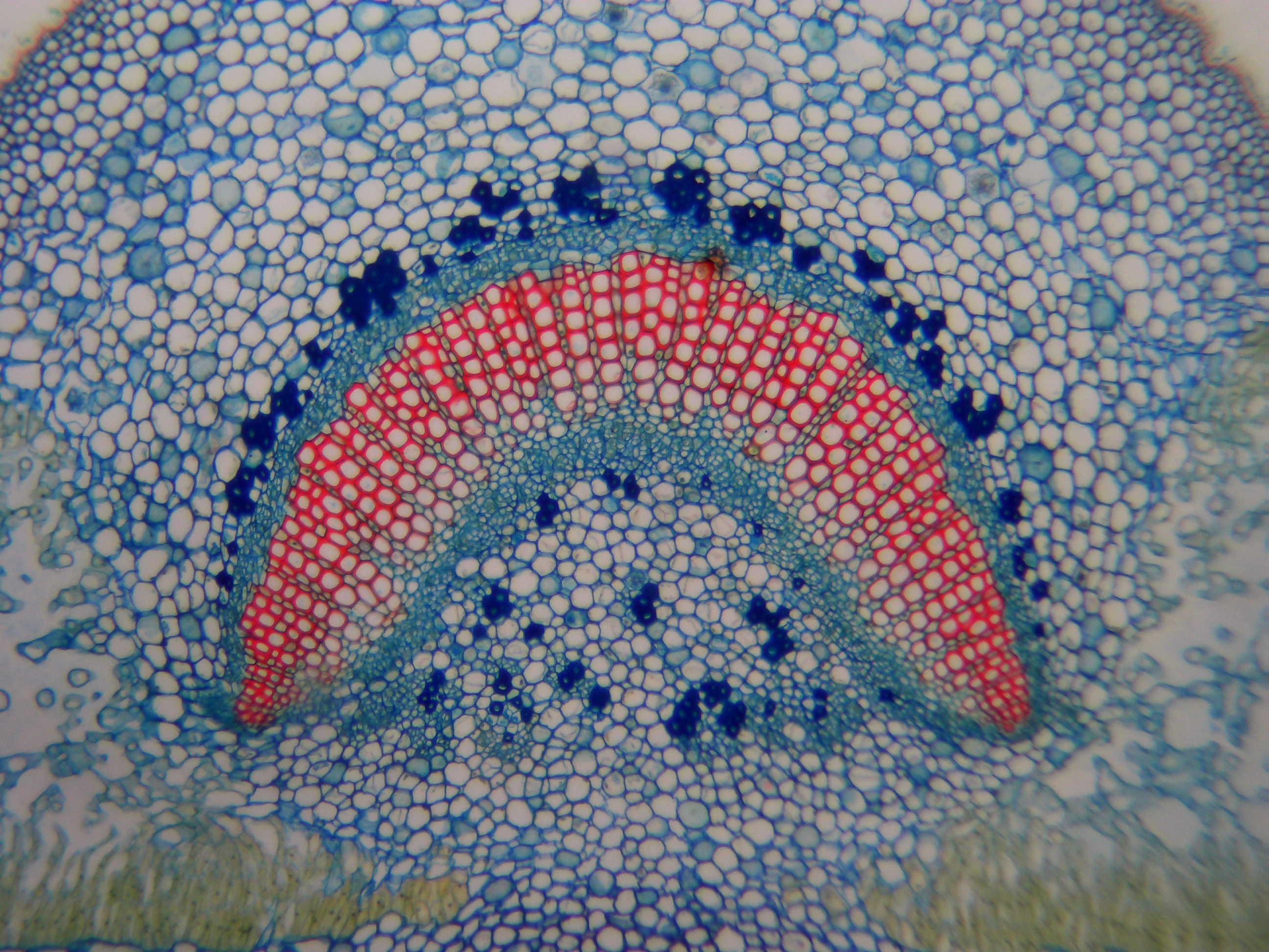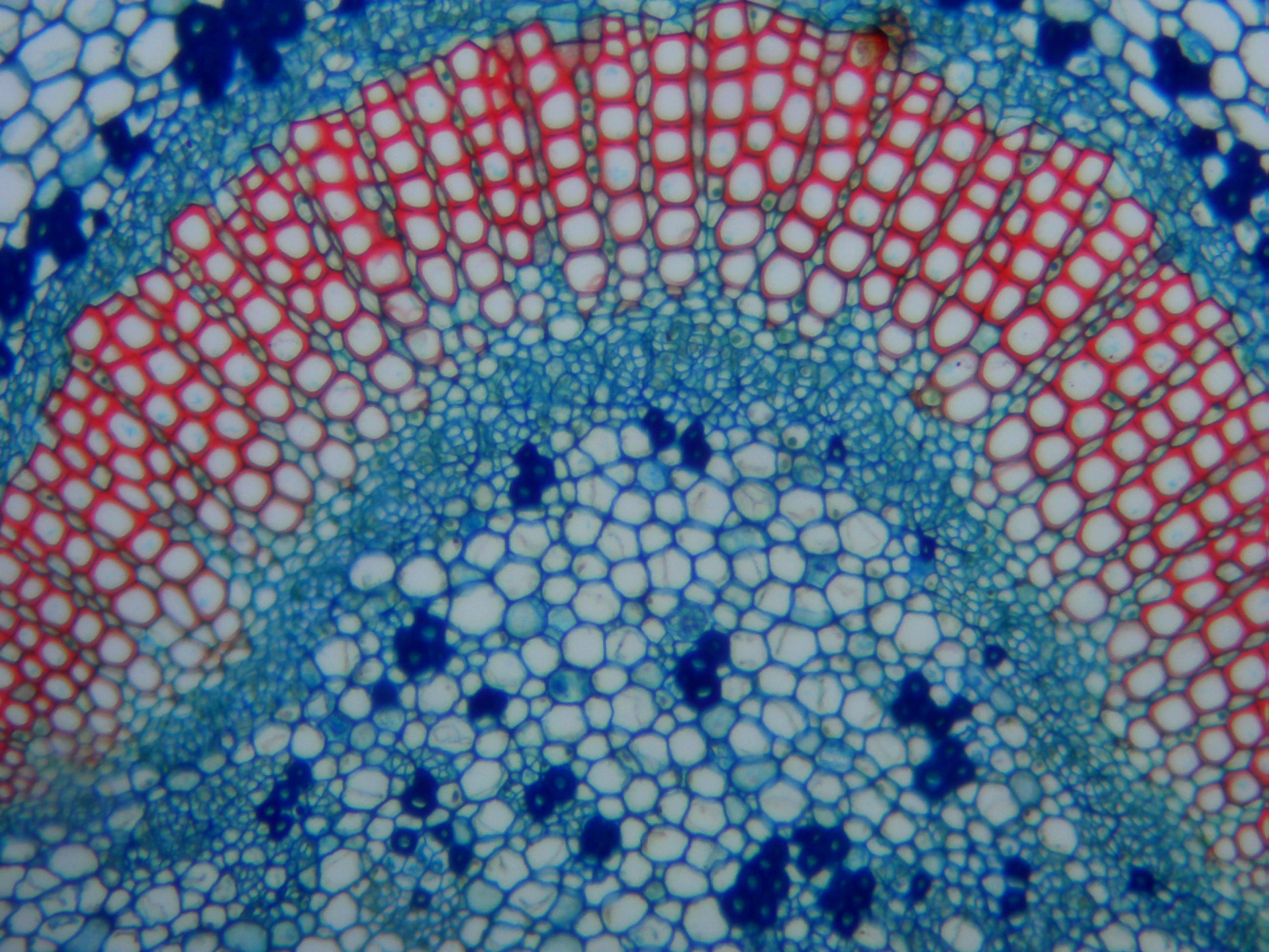 Alle Testfotos wurden durch einen preiswerten Mikroskop (Fremdfabrikat, 500 EUR Preisklasse) mit achromatischen Objektiven 10x (Botanik) und 40x (Hystologie) aufgenommen. Es ging ja darum, die Kamera, und nicht das Mikroskop zu testen...