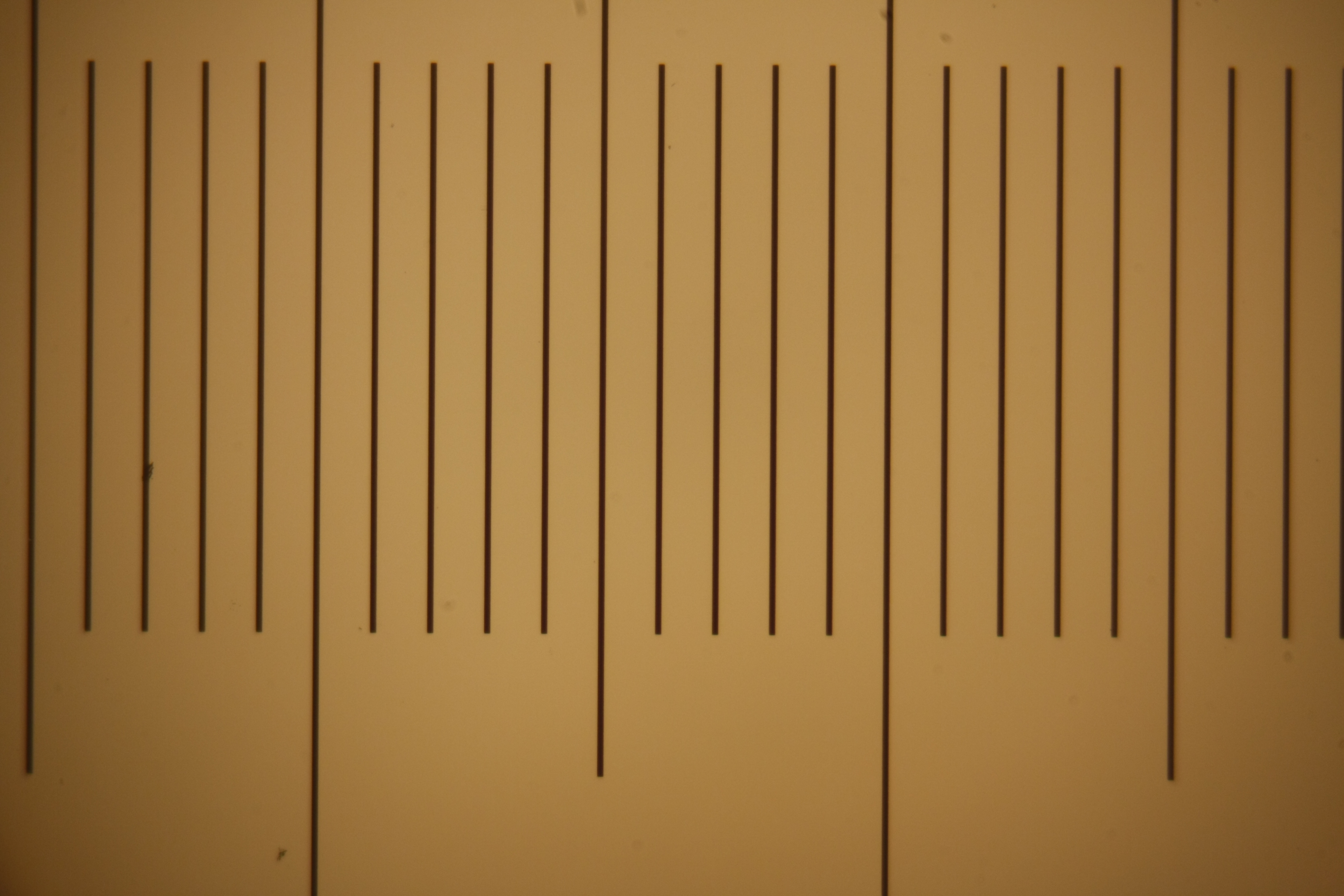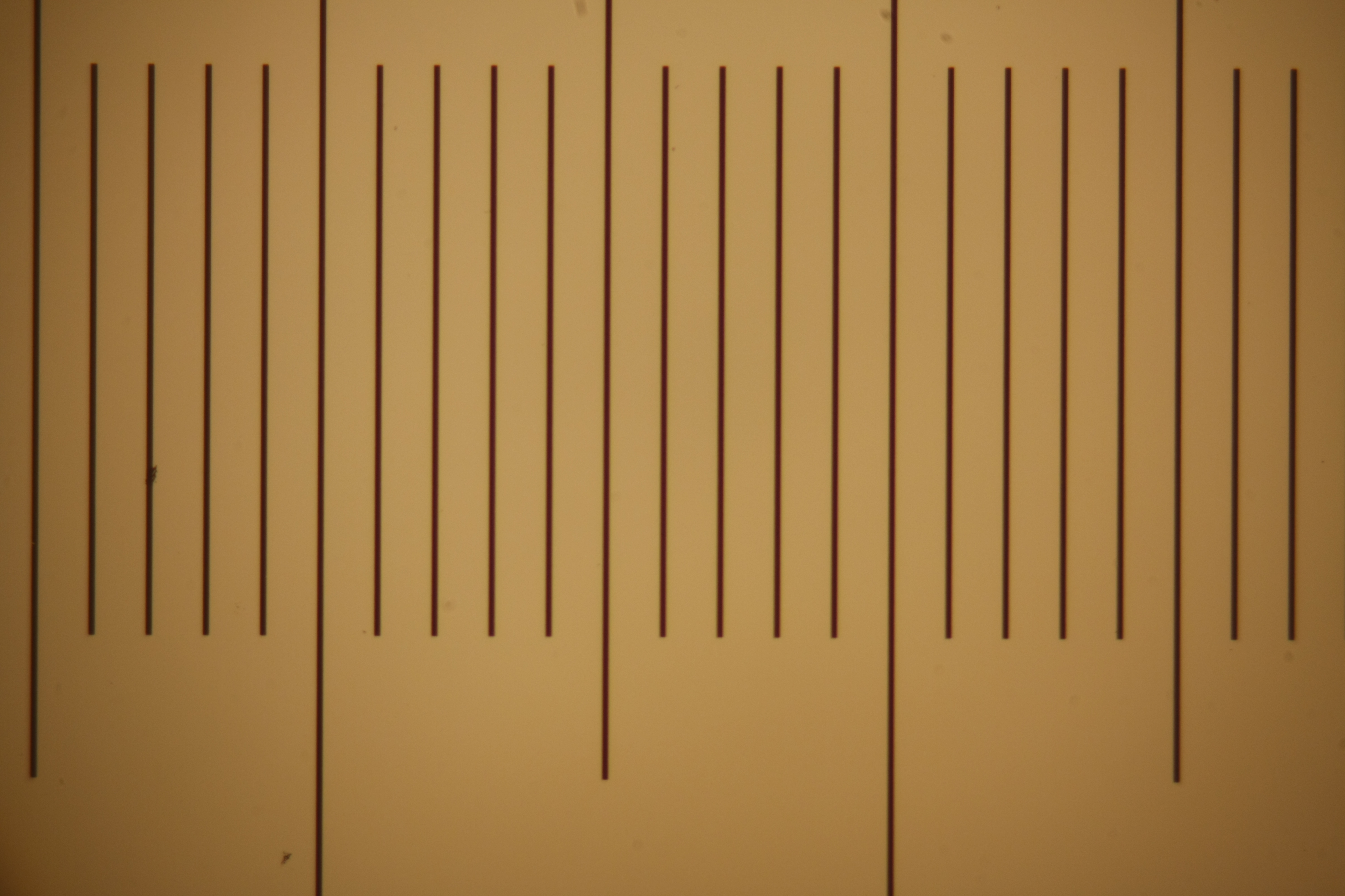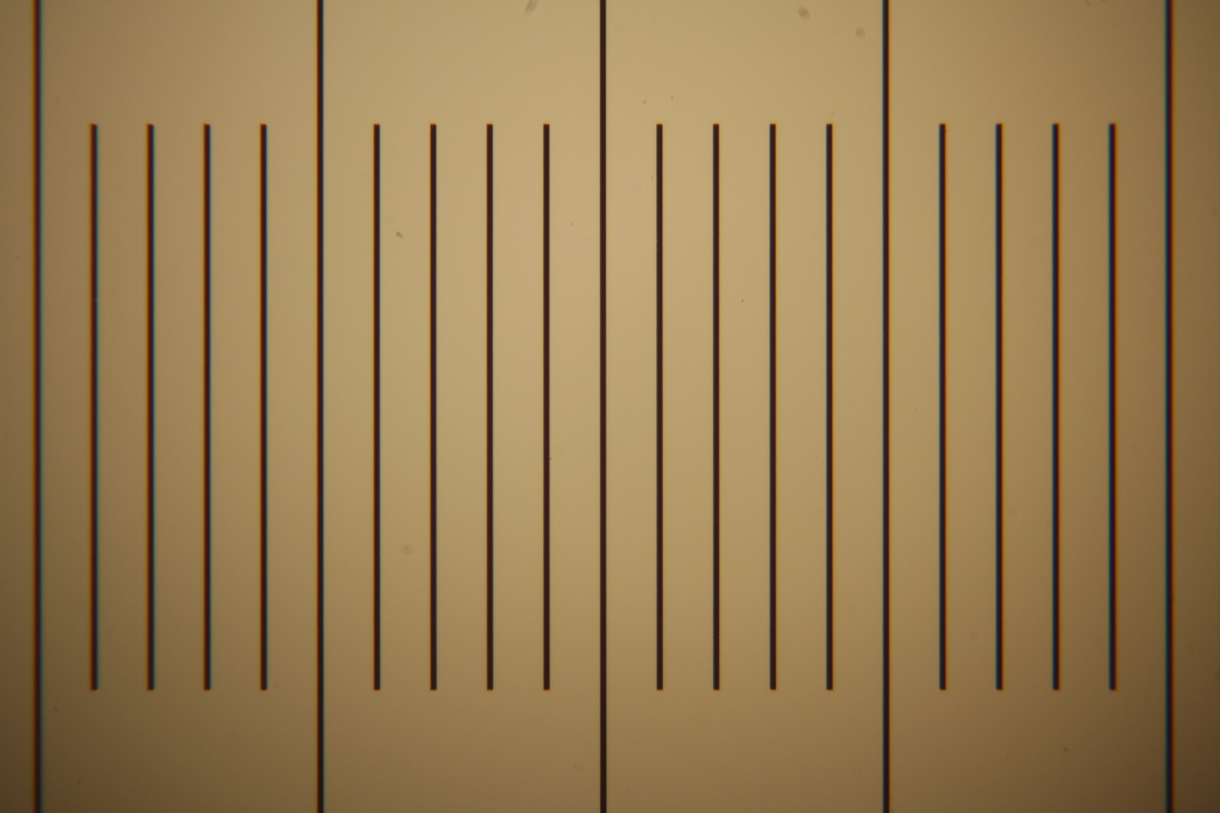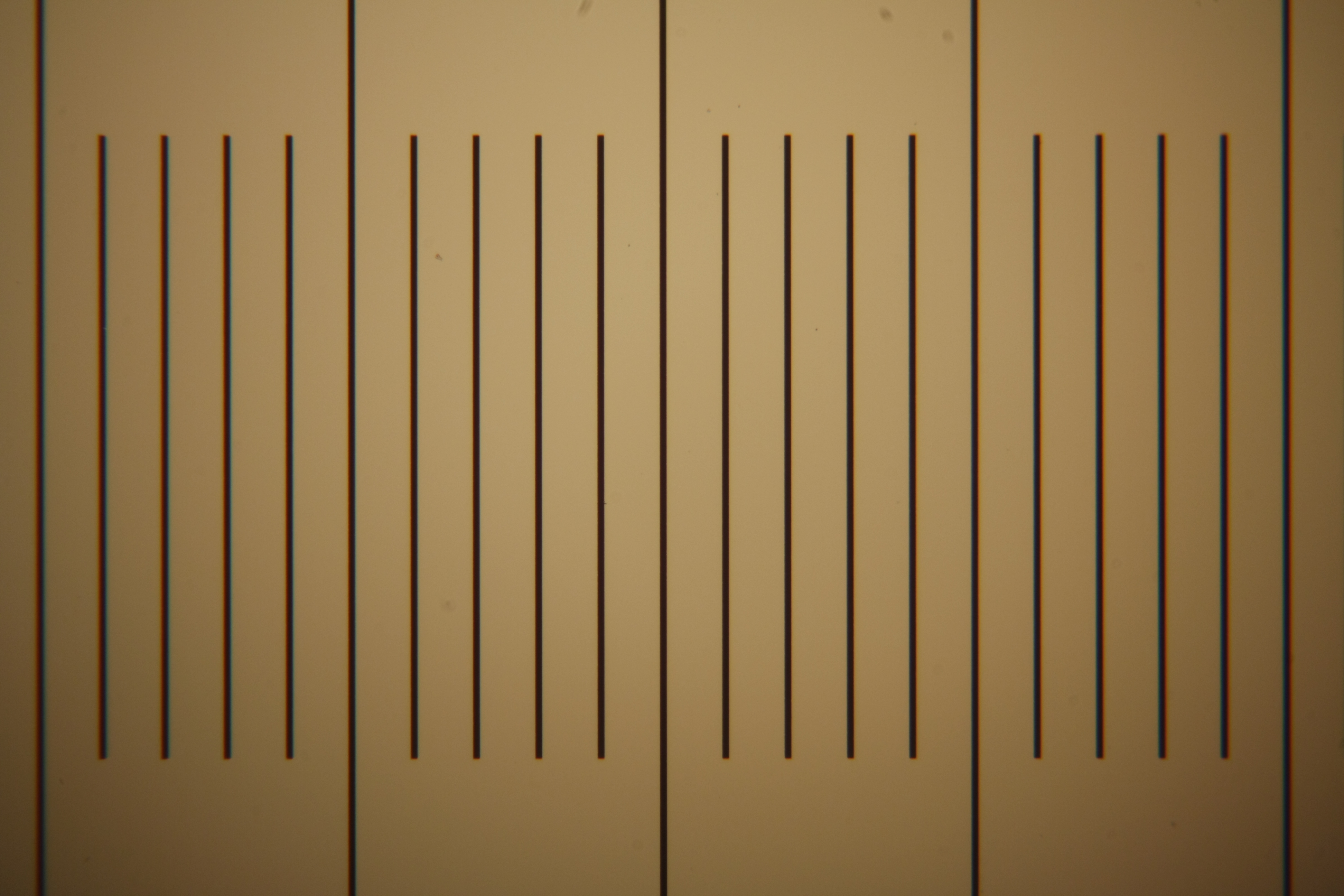 Eine Kalibrationsplatte ist schwarz weiss und die Gravierung hat harte Konturen.