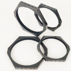 Sechseckige Rohrschellen in modernem Look, schwarz eloxiert, mit Velour ausgekleidet, mit je 5 M6 Gewinden oben und unten - vielfältige Anbaumöglichkeiten!