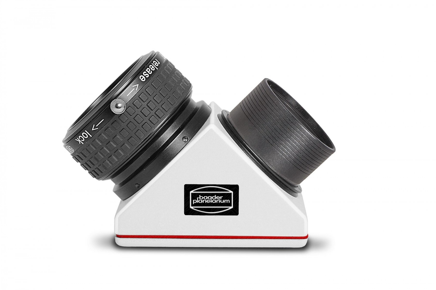 Der Baader 2" ClickLock Zenitspiegel erlaubt zum Beispiel die Aufnahme unseres Hyperion Mark IV Zoom-Okulars, dieses kann direkt auf das Spiegelgehäuse aufgeschraubt werden (dadurch verlängert sich der Scharfstellbereich (= Backfocus) um 47 Millimeter. Die 2"-ClickLock-Klemme wird einfach vom Spiegelgehäuse abgeschraubt (durch Lösen der sechs seitlichen Klemmschrauben M2.5). Oben am Gehäuse wird dadurch ein 2Zoll-Innengewinde zugänglich. Dorthinein wird ein Übergangsring von 2Zoll weiblich auf 2Zoll männlich eingeschraubt (Baader 2"i auf 2"a Umkehrring # 1508020). An diesen Umkehrring kann das Mark IV Zoom-Okular direkt fest angeschraubt werden.